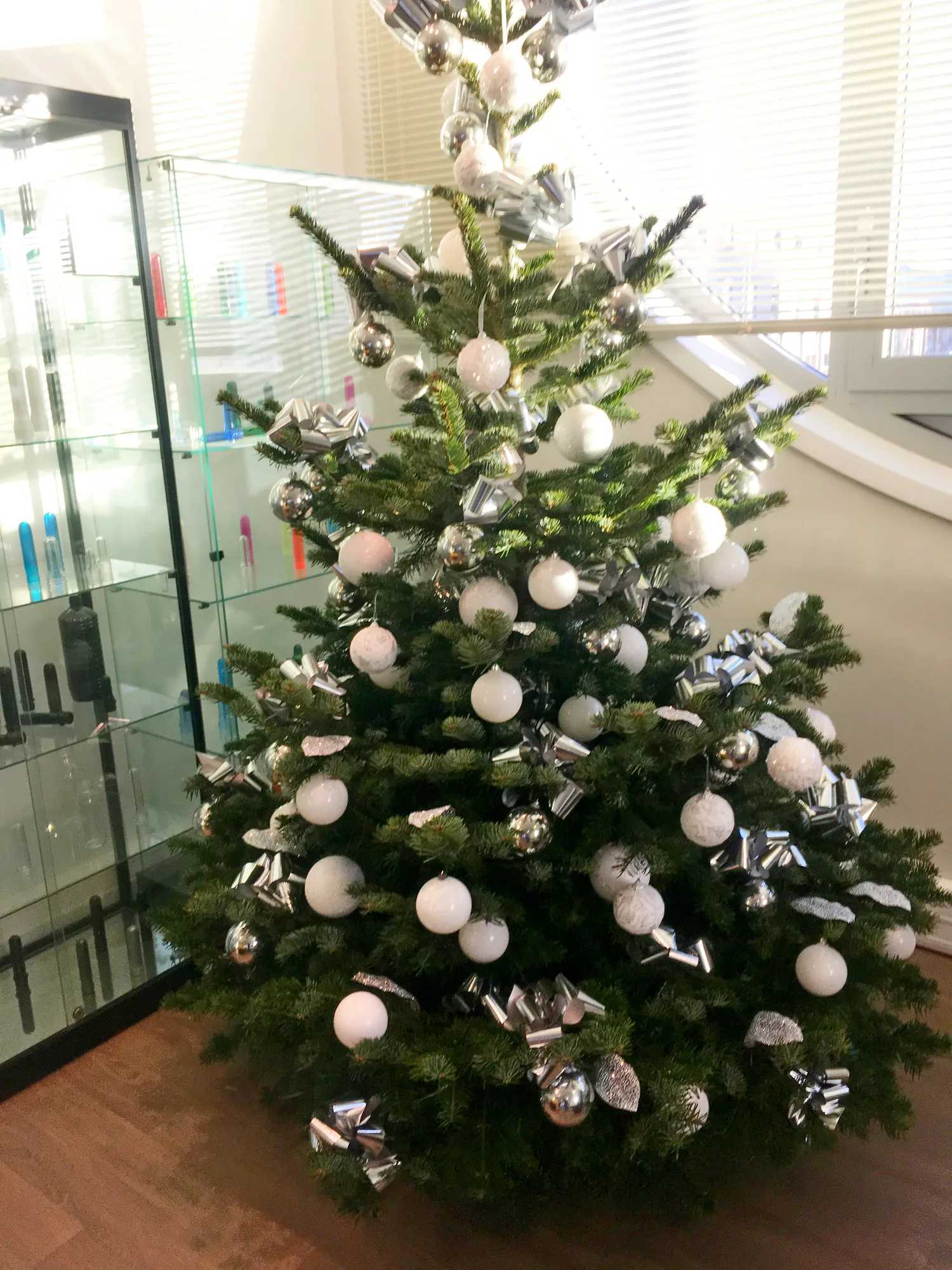 Chaque projet débute par la sélection d’un sapin naturel de type Nordmann, réputé pour sa beauté, sa tenue des aiguilles et son port harmonieux. Le client peut opter pour un sapin vert classique ou effet enneigé, selon l’atmosphère souhaitée. La décoration est pensée sur mesure : boules, rubans, suspensions et autres éléments peuvent être choisis parmi une large palette de couleurs afin de respecter l’identité visuelle ou l’esprit recherché.